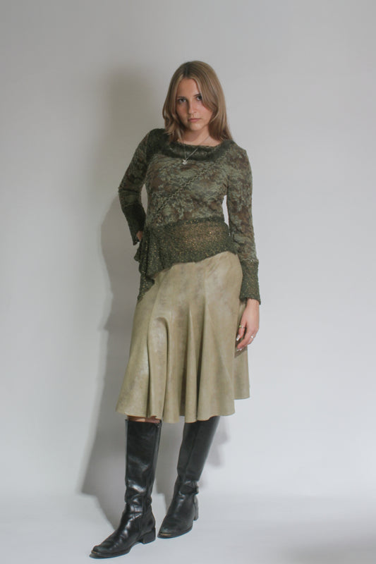 Lace Appliqué and Faux Fur Embellishment Long Sleeve Top